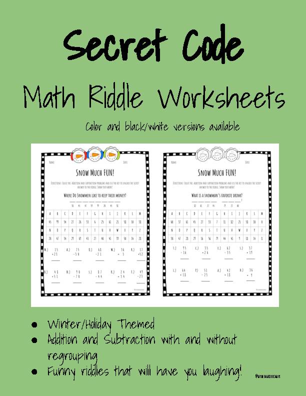 Secret Code Math Addition And Subtraction Worksheets & Teaching ... Motivate your students to have fun with math by solving Secret Code Riddles!Includes 20 printable worksheets (10 Addition and 10 Mixed Addition/Subtraction)Students practice their math skills (or calculator skills) to crack the code!This is Set 2.
